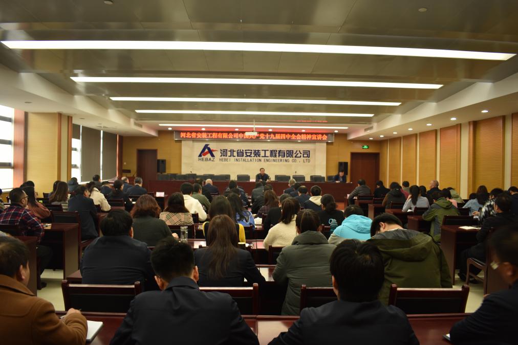 On the afternoon of November 29, Zhang Guoyou, Secretary of the Party committee of the company, announced the spirit of the Fourth Plenary Session of the 19th CPC Central Committee in the conference room on the 12th floor of the company. More than 100 members of the company's leading group, all employees of the company's organs, Secretary of the general Party branch, deputy secretary and director of the party masses office of all branches in Shijiazhuang participated in the study. Yang Weidong, deputy secretary of the company's Party committee, Secretary of the Discipline Inspection Commission and chairman of the labor union, presided over the meeting and put forward learning requirements.